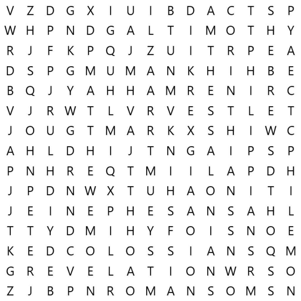 WORD SEARCHThe words are taken from the King James translation New TestamentThe words may be up, down, sideways or diagonal, some letters may be shared. |