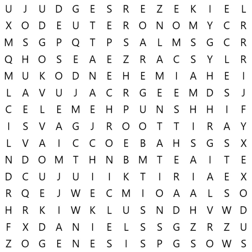 WORD SEARCHThe words are taken from the King James translation of the Old TestamentThe words may be up, down, sideways or diagonal, some letters may be shared. |